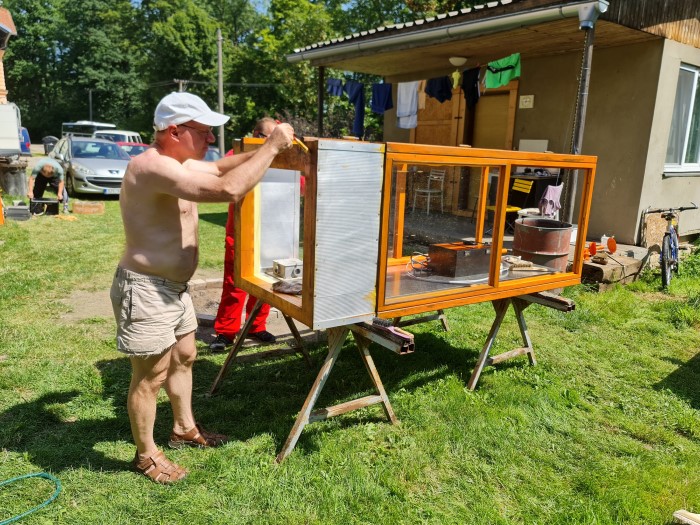 Třetí letní brigáda v Třešti 9. 8. – 17. 8. 2025Po čtrnáctidenní pauze jsme se opět sjeli v našem klubovním sídle, abychom opět pokračovali v naplánovaných činnostech a dokončili rozpracované úkoly. I když je poslední brigáda vždy „pracovně“ kratší, podařilo se udělat kus pořádné práce. Začátek brigády byl zasvěcen jízdě parního vlaku, který po roční přestávce opět zavítal na třešťské nádraží. V sobotu se vlak zastavil, aby si cestující mohli prohlédnout naše muzeum, v neděli pak proběhlo na nádraží zábavné odpoledne pro děti. Pro nás to znamenalo připravit a obsluhovat stánek s občerstvením, aby přítomní návštěvníci a účinkující netrpěli hladem a žízní. Počasí se výjimečně povedlo, což se projevilo zejména na konzumaci chlazených nápojů. Kdo zrovna neobsluhoval ve stánku, zajišťoval přísun surovin, nebo prováděl návštěvníky v muzeu. Těch bylo opravdu hodně. V pondělí pak započaly naplánované práce. Vzhledem k počtu zúčastněných brigádníků, kterých se tu během celého týdne vystřídalo třiadvacet, bylo možno provádět současně více druhů prací, aniž by si pracanti nějak překáželi. Za obytnou buňkou směrem k silnici byl demontován plot oddělující část pozemku a vykáceny všechny náletové dřeviny. Plot byl následně upraven tak, aby pozemek klubu oddělil od prodejny písku. Nyní je pozemek za buňkou daleko lépe přístupný a budeme jej moci i lépe využít. Na klubovně byly konzervačním lakem ošetřeny přečnívající části střešních trámů. Všimli jsme si totiž, že na některých z nich se objevují mapy, svědčící o zatečení vody. Kudy se tam voda dostala, musíme ještě zjistit. Další důležitou činností byla oprava a renovace naší telefonní budky. Ta byla opatrně rozebrána na několik dílů, které byly postupně zkontrolovány, přebroušeny a znovu přelakovány. Jak je obvyklé, nejvíce byl původní nátěr opotřebovaný u země, kam stříká dešťová voda. Brigádníci věnující se této činnosti byli při práci přistiženi dokonce i filmovým štábem jedné z našich soukromých televizních stanic, který si přijel budku natočit do reportáže. Když zjistili, že je zrovna v rekonstrukci, nezbylo jim, než natočit reportáž o její renovaci. Kupodivu ji stihli odvysílat ještě tentýž den. V budově depozitáře se podařilo během dvou dnů namontovat podlahu druhého patra věžičky. Materiál, tedy silná prkna, tu byl připravený už od loňska, aby dřevo dobře vyschlo. Dlužno dodat, že tato práce byla vskutku náročná a vyčerpávající – ve věžičce za slunného počasí panuje skutečně úmorné vedro, o nánosech letitého holubího trusu, které při tom bylo nutno odstranit, už ani nemluvě. V depozitáři se také pokračovalo s tříděním a ukládáním dalších exponátů, především v sekcích spojovací a výpočetní techniky. Kurátoři už při sepisování sbírkových předmětů využívají nový evidenční systém, který umožňuje velmi přehlednou evidenci. Veškeré práce byly pak v pátek v poledne přerušeny, abychom mohli připravit místní kulturní dům na již pravidelné sobotní setkání. V neděli, po obvyklém úklidu, jsme se pak pomalu rozjeli zátky domů. Počasí nám během celého týdne opravdu přálo, sluníčka jsme si užili vrchovatě. Po práci zbyl i čas zajet se osvěžit do osvědčených koupališť, nebo uspořádat malý táborák s opékáním lahodných špekáčků. V kuchyni opět exceloval náš osvědčený kuchař Jirka Hájek, v druhé polovině týdne mu vydatně pomáhala manželka našeho kolegy Jirky Vajcharta Maruška. Letošní pracovní sezóna tímto skončila. Ještě se tu sejdeme na podzim, abychom budovy řádně zazimovali a podebatovali, co nás čeká příští rok. Všem, kteří se letos zúčastnili a přiložili ruku k dílu, patří velký dík. Honza Mottl