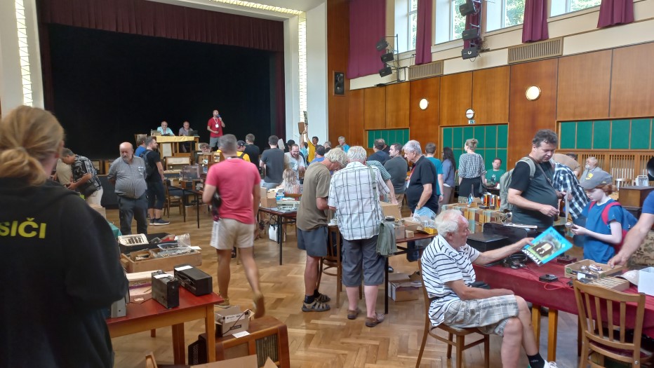 Třešť, léto 2025Je zažitou skutečností, že letní setkání v našem sídelním městě bývá zlatým hřebem všech akcí HRČS a to z několika důvodů: Za prvé se konává v blízkosti klubovního Muzea Tesla a depozitáře našich sbírek, za druhé je pro pracovníky muzea toto setkání součástí poslední týdenní brigády. Díky těmto skutečnostem mívá třešťské setkání nejhojnější účast členstva. Je to logické, neboť klub také nabízí možnost přespání v ubytovně, čehož využijí především přespolní kolegové. Ti mladší mají k dispozici příjemné zelené prostranství pro stanování, každoročně k nám také zavítá několik autokaravanů. Na plácku vedle muzea se každoročně založí táborový oheň, k dispozici bývají připraveny lahodné klobásy či vuřty. Je až s podivem, že mnoho let nám na třešťská setkání vychází skvělé počasí. U ohně se sejdou staří s mladými, sběratelé všeho možného „od elektra“, takže řeč nestojí a o témata k dobrému jídlu a pití vskutku není nouze. Zkrátka pohoda, jakou si člověk může jen přát. Spát se jde okolo půlnoci, neboť pořadatelé už vstávají kolem šesté ráno, aby stihli připravit bar a kuchyni ještě před samotným otevřením kulturního domu. Sobotní ráno je pro členstvo obvyklé. V osm ráno je zpřístupněn sál, připravené stoly se nebývalou rychlostí zaplní známým sortimentem a nastane čilé obchodování. Sekretář Václav Červinka i letos rozdával aktuální letní číslo Radiojournalu, jehož náklad jsme krátce před setkáním vyzvedli z tiskárny. Petr Jeníček na svém stanovišti zájemcům nabízel analýzu součástek a měření kondice elektronek. Pozornosti se těšila bohatá nabídka zajímavějších radiopřijímačů kolegů Horáků či Pavla Anděla. Viktor Vích zajišťoval pomocí miniaturního vysílače pokrytí sálu kulturního domu rozhlasovým signálem na bývalé liblické vlně 470 metrů čili 639 kHz. Zhruba půlhodinu po deváté zahájil licitátor Pavel Boudný dražbu a jako první přišly na řadu přebytky z klubovního muzea. Klub často nabízí předválečné nebo zahraniční přístroje, které nezapadají do sbírkotvorné koncepce Muzea Tesla. Jejich prodejem si aspoň vyděláme na nákup či dopravu nových či rozměrných artefaktů. Po klubovní nabídce už přišli na řadu členové, kterých bylo do dražby přihlášeno celkem dvanáct. Kolegové Jan Polák s čl. číslem 333 a Bohuslav Coufal věnovali výtěžek z dražby svých předmětů ve prospěch klubu. Děkujeme, moc si toho vážíme! Po celou dobu akce bylo k dispozici občerstvení podávané ze dvou stanovišť: Za barem měl službu předseda HRČS Honza Mottl s Tomášem Hanákem a při výdeji obědů se činil Viktor Vích s Petrem Pekárkem s vydatnou pomocí paní našich kolegů, Blankou Čermákovou a Maruškou Vajchartovou. Všem patří obrovský dík za péči o naše žaludky a chuťové buňky. K obědu se podával lahodný guláš z řeznictví z nedalekého Batelova. Náš dosavadní dodavatel, vyhlášené tradiční třešťské řeznictví a uzenářství rodiny Marečkových, bohužel na začátku tohoto roku k lítosti široké veřejnosti, ukončil svou činnost. Po ukončení dražby v kulturním domě ovšem sobotní akce zdaleka nekončila. Účastníci se přesunuli k prohlídce expozic Muzea Tesla a následně do podkroví depozitáře, kde pokračoval prodej dalších přebytků klubovní sbírky, tentokrát těch těžších, rozměrnějších, ale také méně atraktivních. I zde si zájemci za pár desetikorun až stokorun přišli na své. Okolo půl páté odpoledne zůstalo na muzeu původní brigádnické osazenstvo, které toho dne po náročném dni poklidilo kulturní dům a užilo si po zbytek dne zaslouženého odpočinku. V neděli brigádníci poklidili i muzeum s depozitářem a jejich okolí a rozjeli se ke svým domovům. Pavel Boudný, Radiojournal