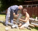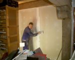 Týdenní akce ve dnech 5. - 13. 7. 2008Již dlouho plánovaného týdne v Třešti se tentokrát zúčastnilo poměrně dost lidí, přijel dokonce i jeden člen HRČS z Německa, který i přes jazykové potíže neváhal přiložit ruku k dílu a podílet se na pracech, se kterými se dle jeho slov ještě neměl šanci setkat. Počasí nám přálo je o víkendech, během týdne bylo pod mrakem, zima a pršelo, takže se většinu času trávilo v budově u rekonstrukcí. Na akci přijela osvědčená třešťská parta ve složení Pavel Boudný, Martin Hájek, Honza Mottl, Pavel Vejdělek a Vladimír Bradáč, z dalších členů, z nichž někteří přijeli do Třeště poprvé, Vítek Rund, Radek Cvingráf, Jaromír Kučera, Pavel Spurný a již zmiňovaný Egbert Wilhelm, kupodivu samí nekuřáci, takže odpadl problém s likvidací vajglů v dřevěné časti budovy, jak už se v minulosti parkrát stalo. Lze jen doufat, že množství práce, které se za týden udělalo, neodradilo nové členy od příští akce. Množství zúčastněných členů umožnilo rozjet souběžně několik akcí, jako nejdůležitější bod byla dostavba dílny, s tím se současně dostavěl i vnitřní prostor zazděných vrat směrem ke kolejím, kde bylo potřeba nahodit opadávající zdi, zasklít kovové rámy oken, naštukovat a vymalovat. Vše se podařilo, včetně zakrytí podlahy v prostoru vzniklých výklenků. V ubytovně byl upraven rozvod vody, protože se v zimě ukázalo, že není možné používat sprchu, jelikož přívod vody do ní je veden částečně venkem a nedá se napustit, aniž by voda mohla v trubkách zamrznout. Nový přívod je veden přímo od vodoměru ubytovnou a průtokový ohřívač vody, původně zapojený jen pro sprchu, nyní funguje i v kuchyni, kde nahradil nikdy pořádně nefungující malý průtokáč a teplá voda je přivedena i k umyvadlu na WC. Zimnímu provozu tedy již nic nebrání. Další plánovanou akcí byl okap nad budoucími venkovními záchody a částí ubytovny, tady práce zavisela hlavně na počasí. Mimo to jsme museli začít vyklízet dřevěnou kůlnu za budovou, kterou nám kdysi zapůjčila nájemkyně nádražního bytu, ke kterému kůlna patřila a ve které jsme měli uložen stavební materiál. Nájemci se vyměnili a nová nájemkyně o kůlnu projevila zájem. Ke konci týdne bylo dokončeno přízemí budovy u původních vrat a do tohoto prostoru se nastěhovala zpět expozice, kterou předvádíme návštěvníků při Dnech otevřených dveří, které se konají 2x ročně při příležitosti jízd parních vlaků na trati Slavonice - Kostelec. Na dílně zbývá udělat stropní podhledy, které budou mezi trámy a budou na nich namontována zářivková tělesa. Trámy budou částečně vyčnívat, jednak to bude hezké a jednak nejsou stejně vysoko nad zemí, jsou srovnány podle horní hrany, kde nesou podlahu patra, takže by s tím byly potíže. Zásuvkové rozvody budou namontovány do lišt podél zdí. Jako zpestření celé akce jsme si udělali jeden večer šestnáctimilimetrové kino s projektorem Meoclub, který je součástí klubovní sbírky. Nechyběl ani tradiční oheň s opékáním špekáčků, diskotéka ze 60. - 80. let na gramorádiu Humoreska 2 a v sobotu před odjezdem, když se konečně počasí vrátilo k letnímu normálu, i koupání v čenkovském lomu.