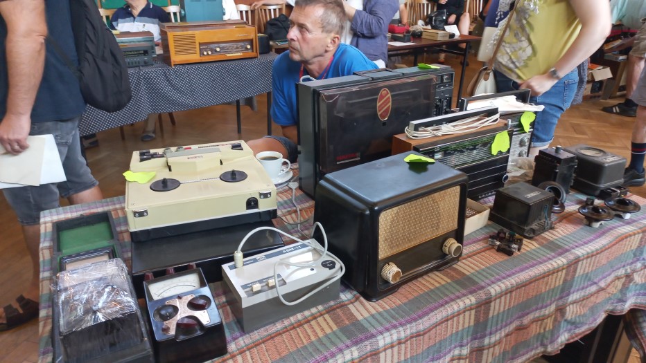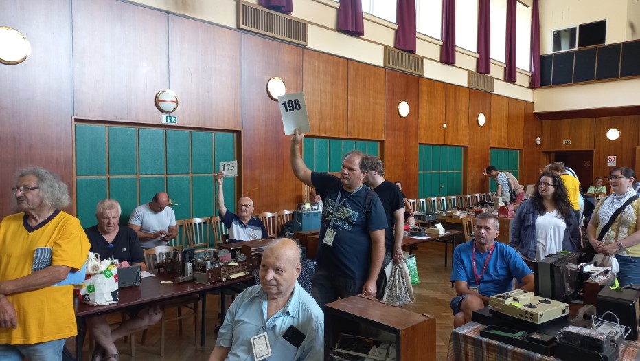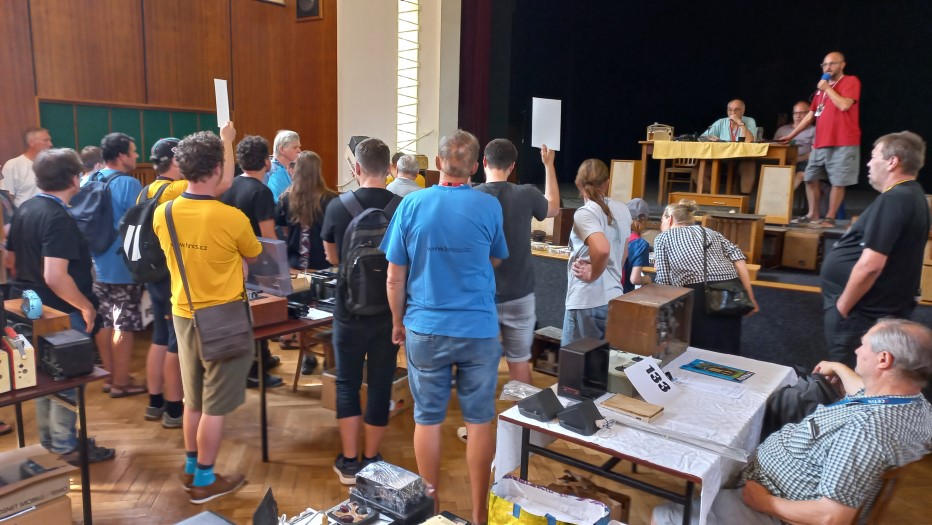 Třešť, léto 2025Je zažitou skutečností, že letní setkání v našem sídelním městě bývá zlatým hřebem všech akcí HRČS a to z několika důvodů: Za prvé se konává v blízkosti klubovního Muzea Tesla a depozitáře našich sbírek, za druhé je pro pracovníky muzea toto setkání součástí poslední týdenní brigády. Díky těmto skutečnostem mívá třešťské setkání nejhojnější účast členstva. Je to logické, neboť klub také nabízí možnost přespání v ubytovně, čehož využijí především přespolní kolegové. Ti mladší mají k dispozici příjemné zelené prostranství pro stanování, každoročně k nám také zavítá několik autokaravanů. Na plácku vedle muzea se každoročně založí táborový oheň, k dispozici bývají připraveny lahodné klobásy či vuřty. Je až s podivem, že mnoho let nám na třešťská setkání vychází skvělé počasí. U ohně se sejdou staří s mladými, sběratelé všeho možného „od elektra“, takže řeč nestojí a o témata k dobrému jídlu a pití vskutku není nouze. Zkrátka pohoda, jakou si člověk může jen přát. Spát se jde okolo půlnoci, neboť pořadatelé už vstávají kolem šesté ráno, aby stihli připravit bar a kuchyni ještě před samotným otevřením kulturního domu. Sobotní ráno je pro členstvo obvyklé. V osm ráno je zpřístupněn sál, připravené stoly se nebývalou rychlostí zaplní známým sortimentem a nastane čilé obchodování. Sekretář Václav Červinka i letos rozdával aktuální letní číslo Radiojournalu, jehož náklad jsme krátce před setkáním vyzvedli z tiskárny. Petr Jeníček na svém stanovišti zájemcům nabízel analýzu součástek a měření kondice elektronek. Pozornosti se těšila bohatá nabídka zajímavějších radiopřijímačů kolegů Horáků či Pavla Anděla. Viktor Vích zajišťoval pomocí miniaturního vysílače pokrytí sálu kulturního domu rozhlasovým signálem na bývalé liblické vlně 470 metrů čili 639 kHz. Zhruba půlhodinu po deváté zahájil licitátor Pavel Boudný dražbu a jako první přišly na řadu přebytky z klubovního muzea. Klub často nabízí předválečné nebo zahraniční přístroje, které nezapadají do sbírkotvorné koncepce Muzea Tesla. Jejich prodejem si aspoň vyděláme na nákup či dopravu nových či rozměrných artefaktů. Po klubovní nabídce už přišli na řadu členové, kterých bylo do dražby přihlášeno celkem dvanáct. Kolegové Jan Polák s čl. číslem 333 a Bohuslav Coufal věnovali výtěžek z dražby svých předmětů ve prospěch klubu. Děkujeme, moc si toho vážíme! Po celou dobu akce bylo k dispozici občerstvení podávané ze dvou stanovišť: Za barem měl službu předseda HRČS Honza Mottl s Tomášem Hanákem a při výdeji obědů se činil Viktor Vích s Petrem Pekárkem s vydatnou pomocí paní našich kolegů, Blankou Čermákovou a Maruškou Vajchartovou. Všem patří obrovský dík za péči o naše žaludky a chuťové buňky. K obědu se podával lahodný guláš z řeznictví z nedalekého Batelova. Náš dosavadní dodavatel, vyhlášené tradiční třešťské řeznictví a uzenářství rodiny Marečkových, bohužel na začátku tohoto roku k lítosti široké veřejnosti, ukončil svou činnost. Po ukončení dražby v kulturním domě ovšem sobotní akce zdaleka nekončila. Účastníci se přesunuli k prohlídce expozic Muzea Tesla a následně do podkroví depozitáře, kde pokračoval prodej dalších přebytků klubovní sbírky, tentokrát těch těžších, rozměrnějších, ale také méně atraktivních. I zde si zájemci za pár desetikorun až stokorun přišli na své. Okolo půl páté odpoledne zůstalo na muzeu původní brigádnické osazenstvo, které toho dne po náročném dni poklidilo kulturní dům a užilo si po zbytek dne zaslouženého odpočinku. V neděli brigádníci poklidili i muzeum s depozitářem a jejich okolí a rozjeli se ke svým domovům. Pavel Boudný, Radiojournal